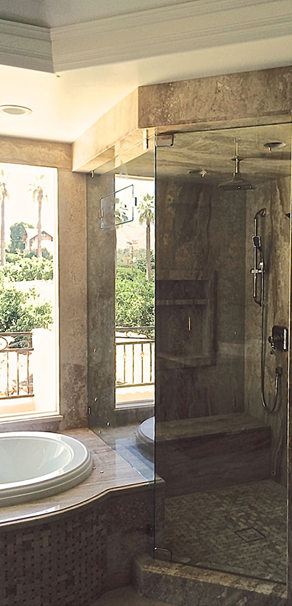 All gaps between glass panels and/or walls is less than 1/8" 100% brass hardware