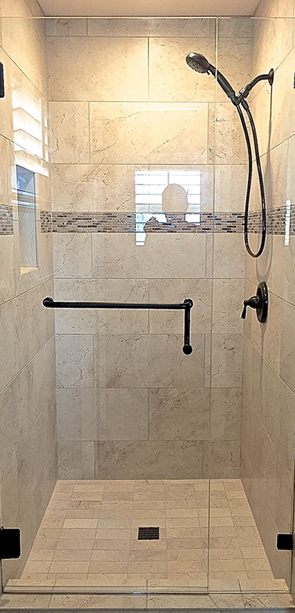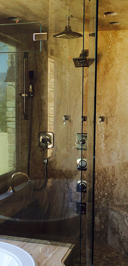 All gaps between glass panels and/or walls is less than 1/8" 100% brass hardware